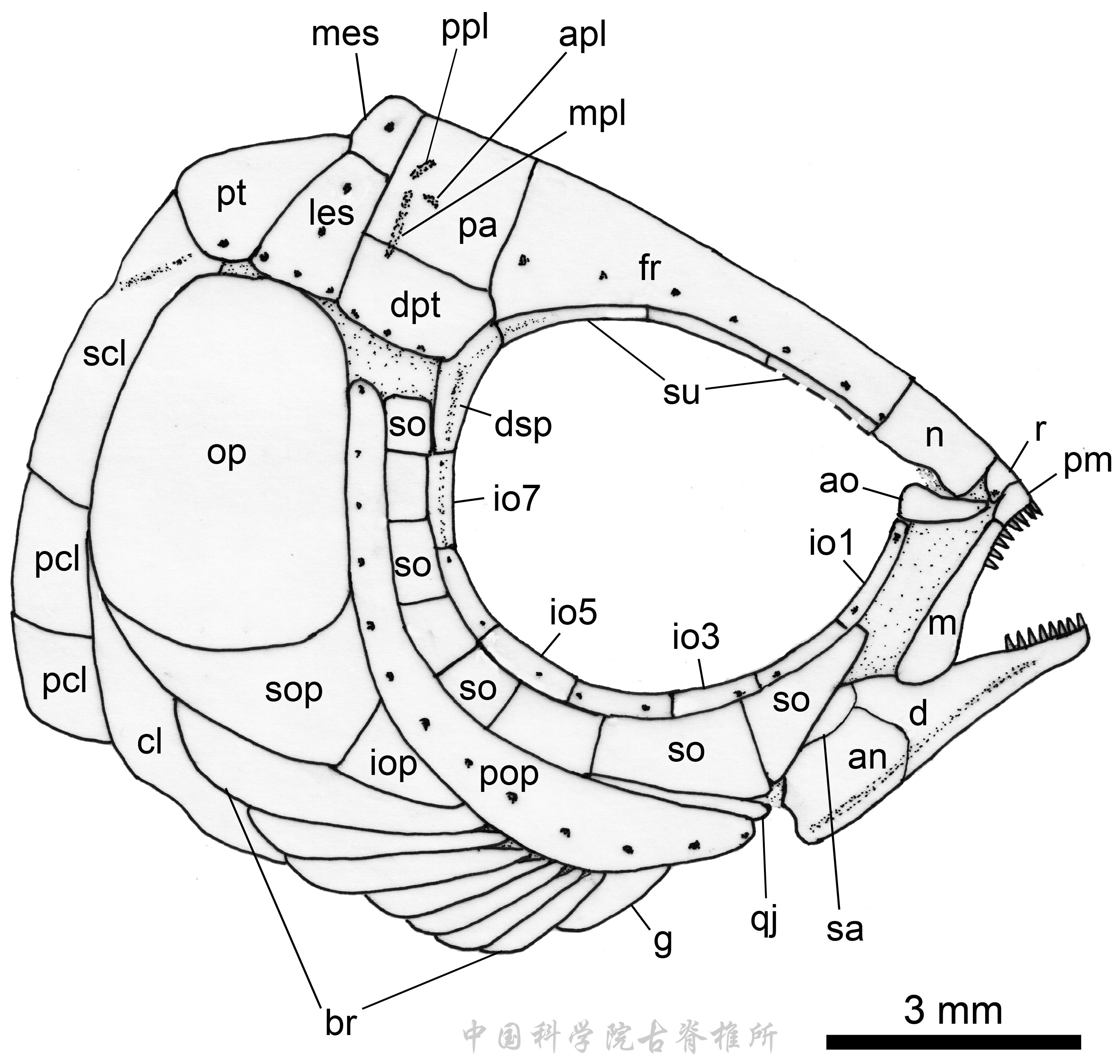 圖5?小貴州短體魚頭部和肩帶復原圖