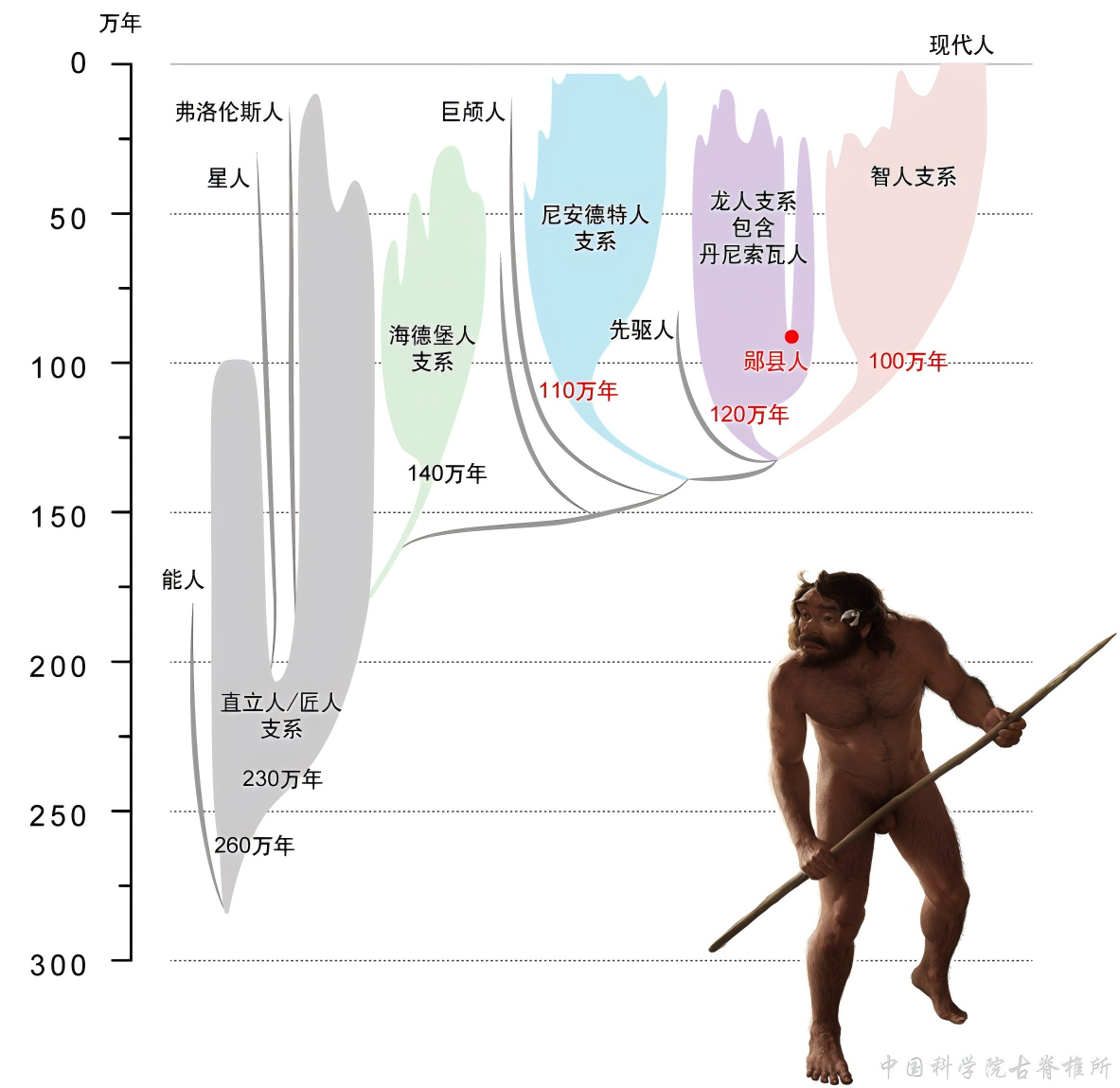 鄖縣人并非直立人,而是與丹尼索瓦人密切相關(guān)的龍人支系的早期代表。這說明早在100萬年前,人類祖先已經(jīng)分化成多個獨(dú)立演化的群體,其分化時間之早、程度之復(fù)雜,遠(yuǎn)超我們過去的想象。根據(jù)這一新的譜系框架,亞洲地區(qū)多數(shù)中更新世人類化石——包括大荔、金牛山、華龍洞、許家窯、夏河、澎湖及丹尼索瓦洞穴出土標(biāo)本,以及發(fā)現(xiàn)于松花江哈爾濱江段的龍人正型頭骨——都可歸入龍人支系。該支系與智人擁有最近的共同祖先。